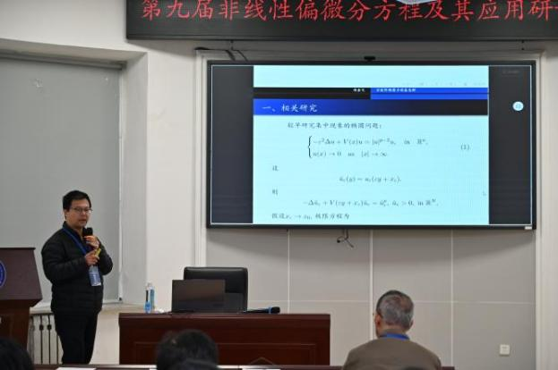 第三节报告由大连理工大学曹杨教授主持。江西水利电力大学杨金戈教授作了题为《Concentration of ground states of elliptic equations with the fractional Laplacian》的报告;辽宁大学数学与统计学院博士李科宇作了题为《Error Estimation in the Mean-Field Limit of Kinetic Flocking Models with Local Alignments》的报告。