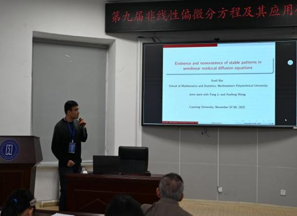 由辽宁大学数学与统计学院主办的《第九届非线性偏微分方程理论及应用研讨会》于2025年11月9日成功落幕。本次大会以非线性偏微分方程理论及应用为主题,汇聚偏微分方程领域的专家学者及研究人员30余人,共同探讨偏微分方程理论及应用的最新研究成果。