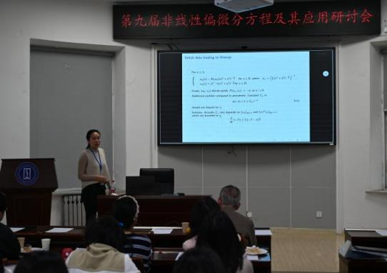 会议期间学术报告围绕着偏微分方程理论及应用的最新研究成果进行深入交流。本次研讨会的首节报告由吉林大学数学学院王春朋教授主持。成都理工大学姬瑞红教授作了题为《Global Well-Posedness of the Fluid Dynamics Equations of Damped Wave Type》的报告;西北工业大学白学利教授作了题为《Existence and nonexistence of stable patterns in semilinear nonlocal diffusion equations》的报告。